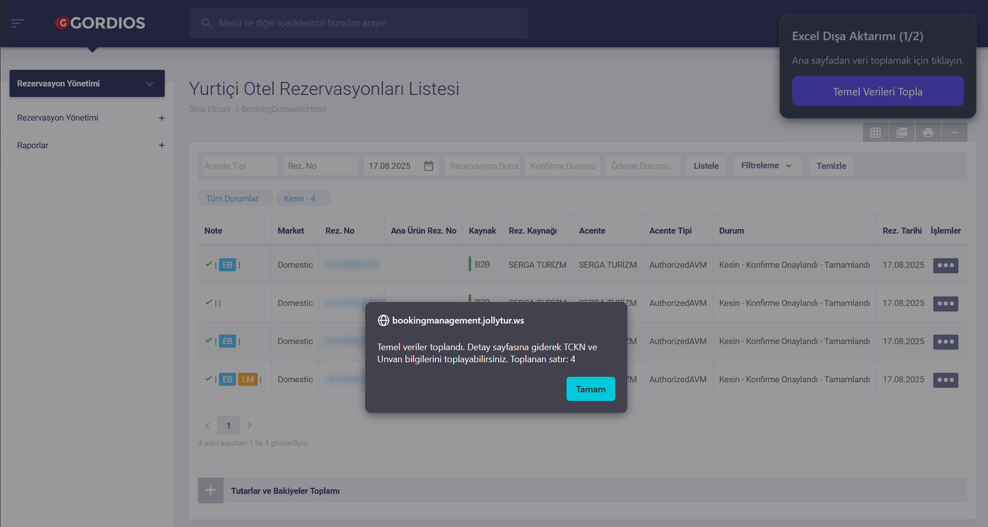 Jolly Tur’un yetkili acentesi olan Serkan Bey, rezervasyon verilerinin işlenmesi ve faturalandırmaya hazır hale getirilmesi konusunda benden destek talep etti. Bu ihtiyaç doğrultusunda, kendisi için özel bir otomasyon script’i geliştirdim.